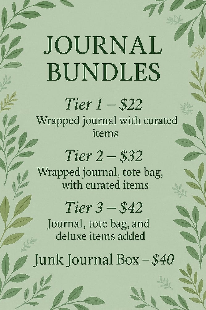 A cozy collection of journal bundles designed to make writing feel fun, personal, and creative. Each one includes a wrapped journal and a mix of curated items, chosen to add a little extra joy to your space.
